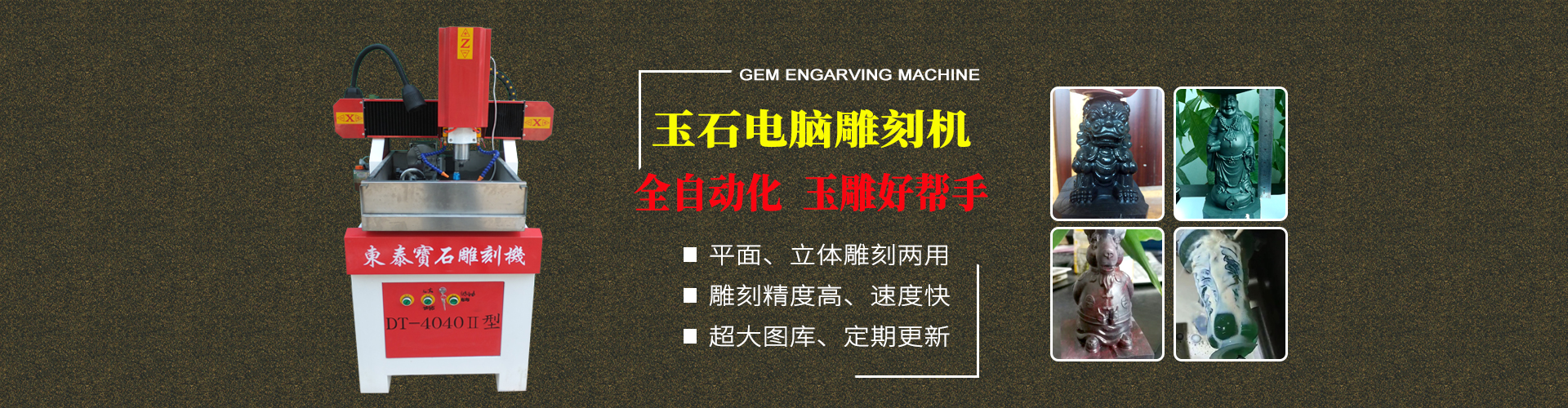 東泰生產(chǎn)出的寶石機(jī)械設(shè)備可用于加工晶體雜石、瑪瑙玉石、人造石、其他石類及貝殼、骨頭化石等等,加工出的產(chǎn)品孔位精確、損耗小、速度快、效率高;雕刻品細(xì)致、精美,大大降低了成本,提高了效率,深受寶石行業(yè)商家的歡迎。